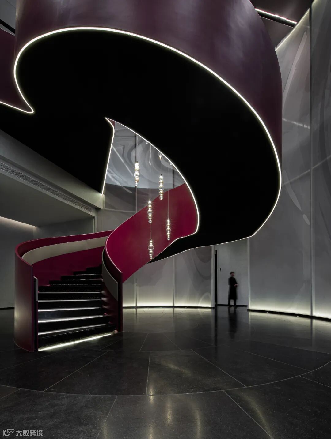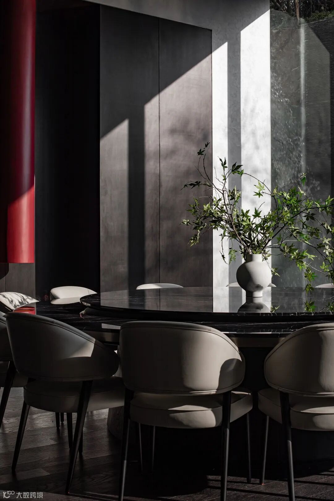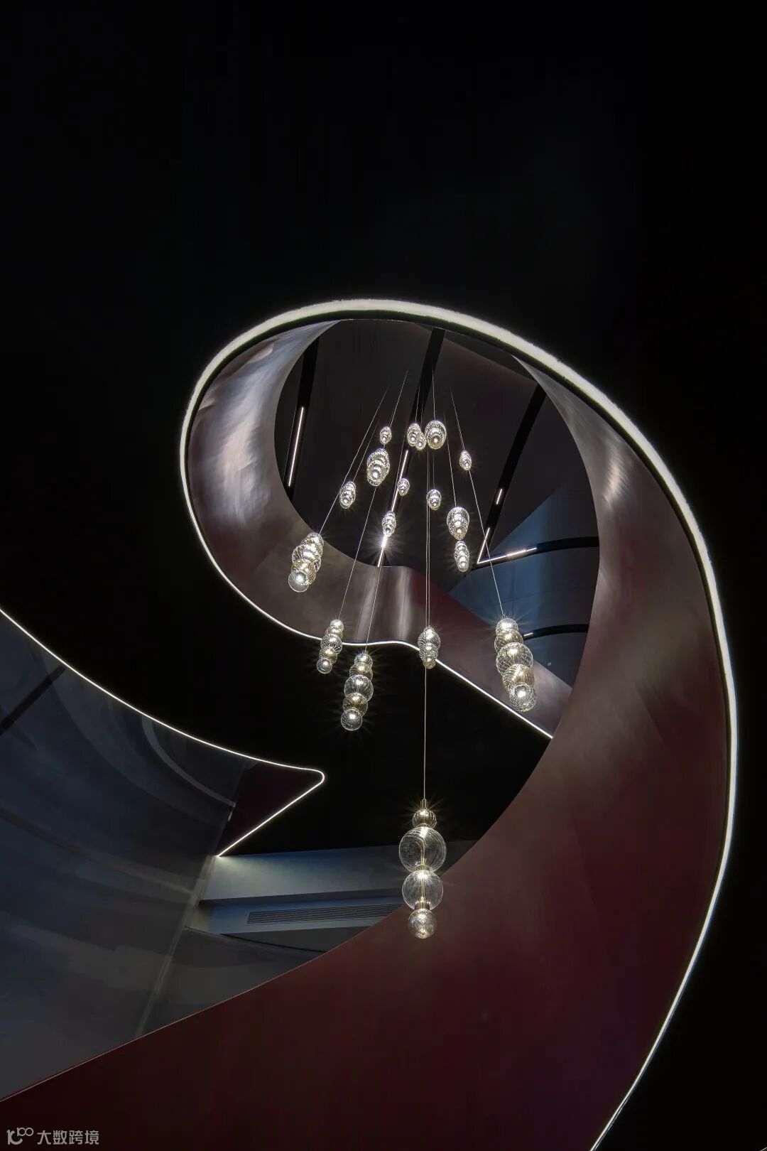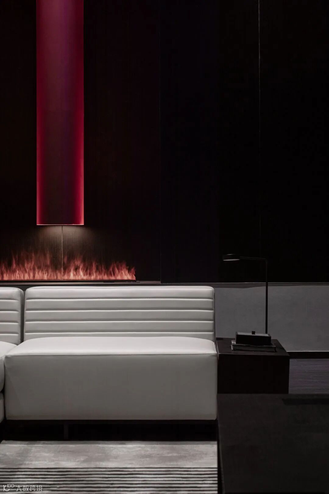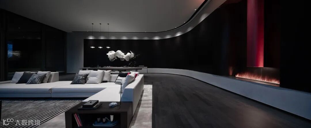 人们总是受制于时间与空间的局限,而霞客文化的精神内心便在于“创新灵魂”。设计师在古典与现代美学中探索,并将奇世山川融入于此。落地窗将自然景色引入室内,模糊边界感,天花的艺术装饰就像是随风而动的云,于线条的平面律动中无限延伸,在黑白灰色调中成就这幅山水墨画中的点睛之笔。