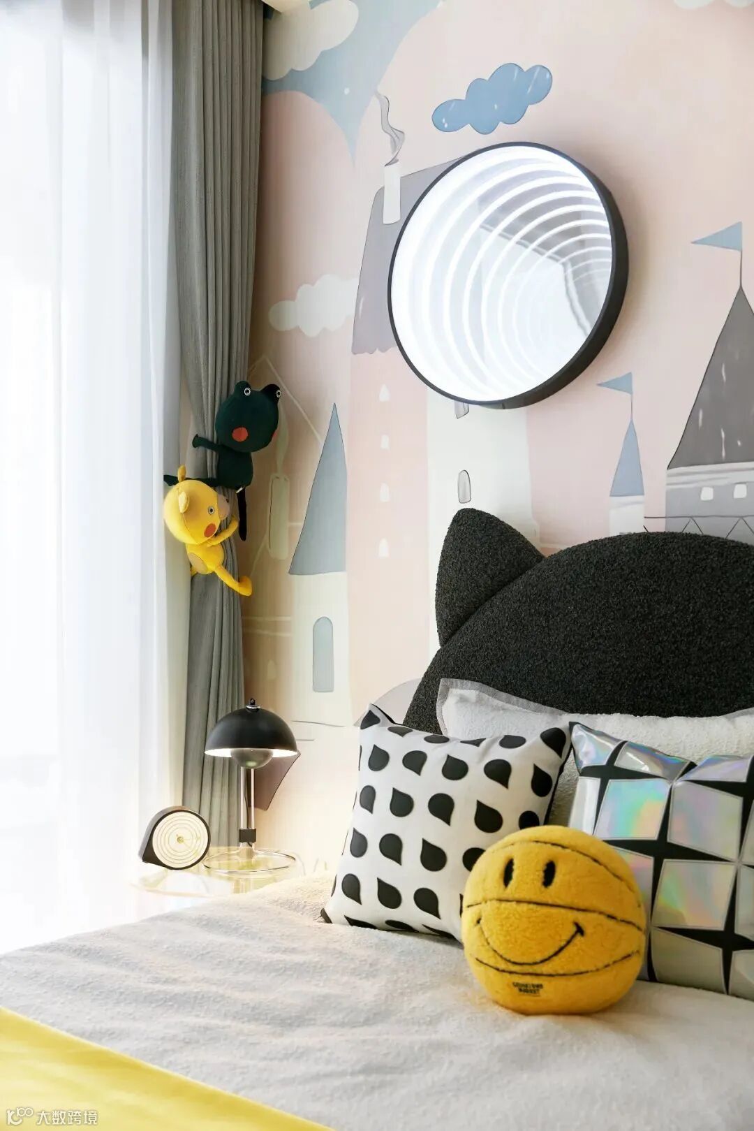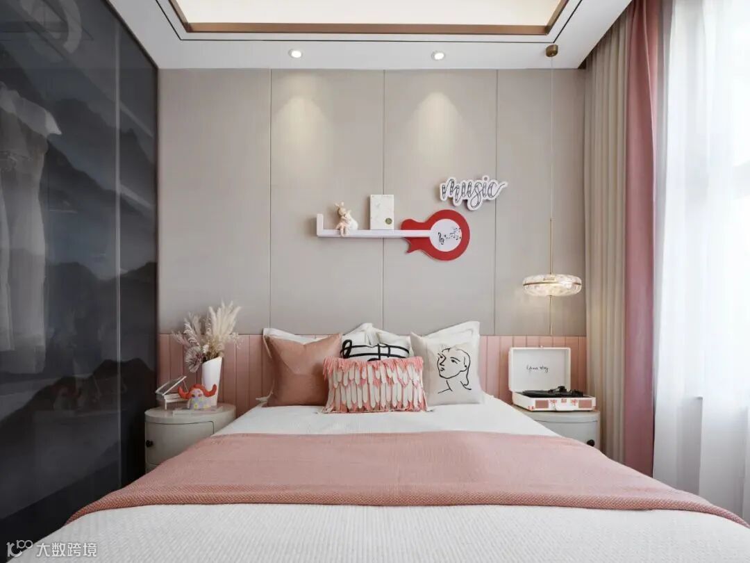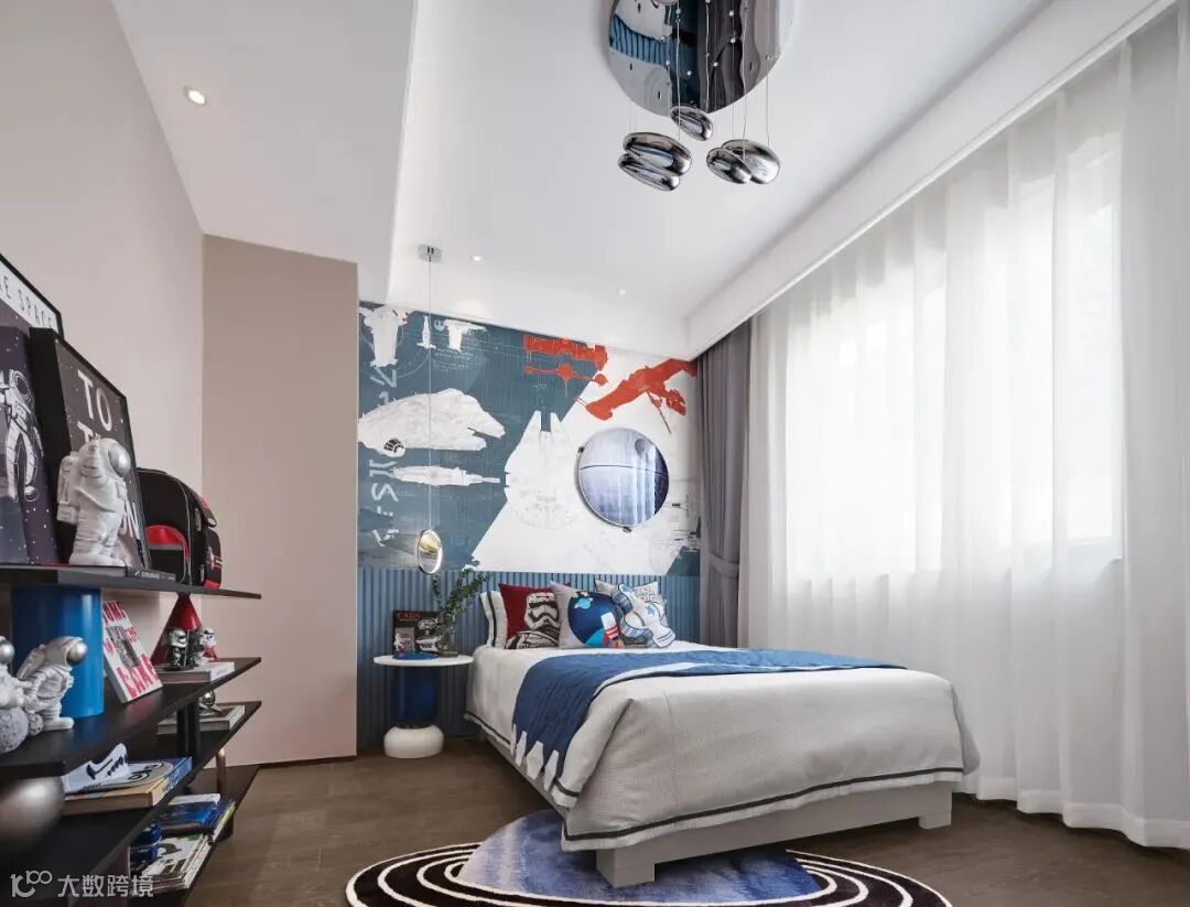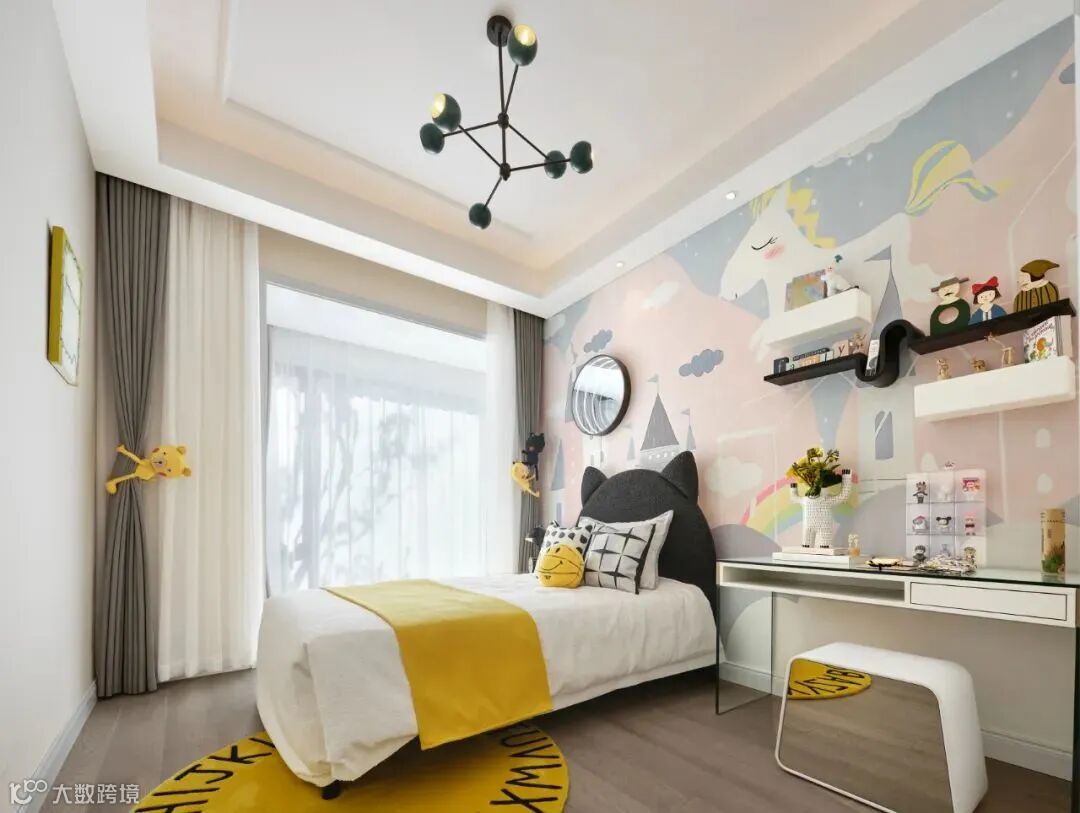 潮玩盲盒传递着生活的美好,以Pop Mart为设计灵感,采用盲盒中活泼的色彩为孩子打造丰富多彩的梦幻空间,奠定儿童房童真浪漫的空间基调,给孩子提供一个放飞梦想的小天地。
