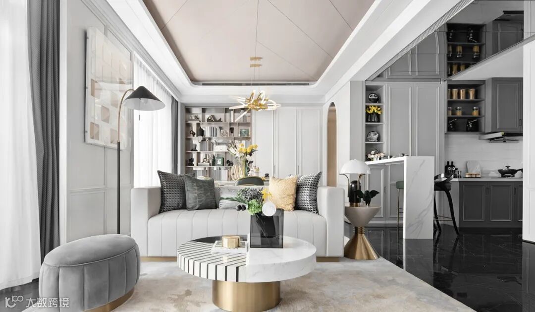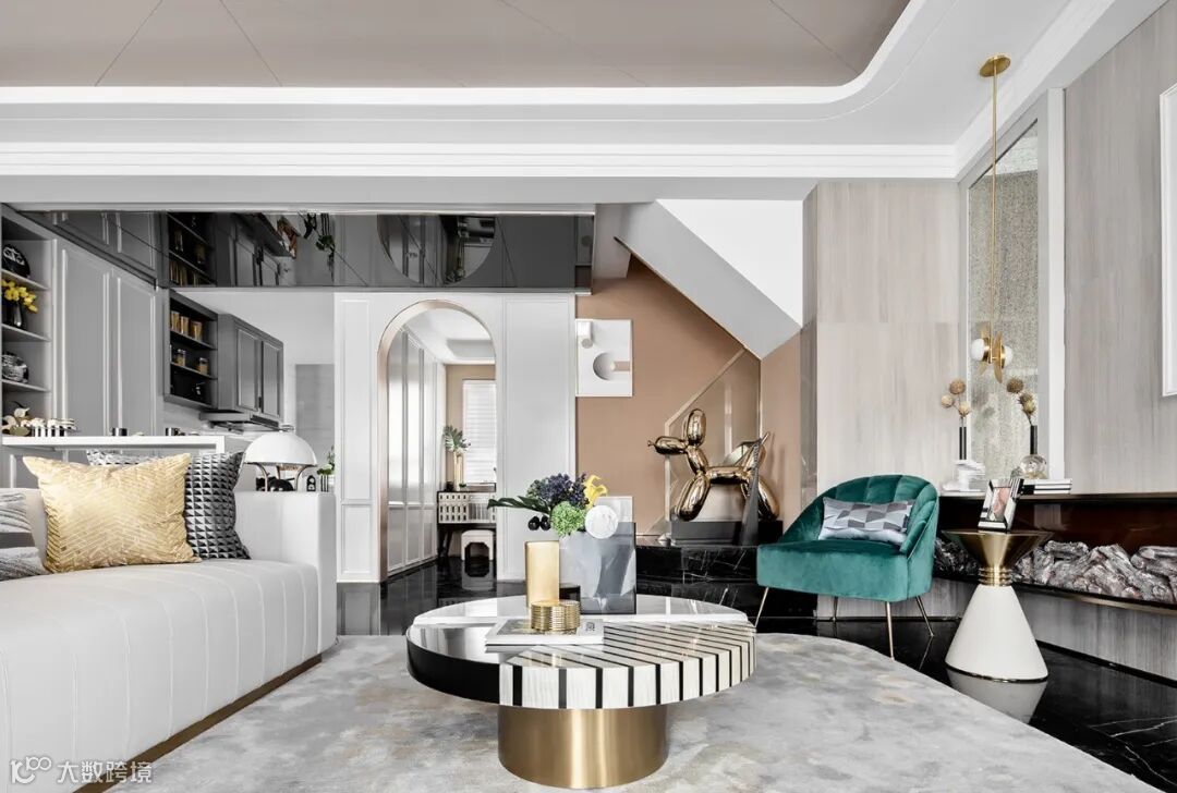 除了通过线条静谧呈现的艺术之美,对话经典的现代气质亦毫不逊色。金属与水晶间或穿插,黑白线条克制冲撞,折射出时尚的高冷,为莹白色的温润基调注入动感。大理石与皮革等材质的加入,则为空间视觉的饱满添加了必要的层次。简而暖,淡而温,穿越几个世界的人文美学悄然绽放。