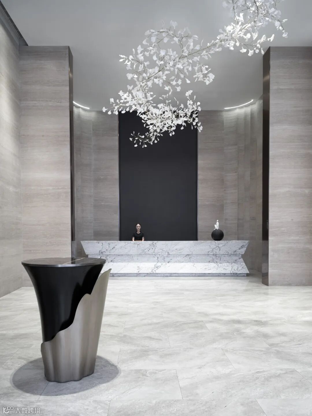 洽谈区尽头,一条垂直动线回旋而上,不规则的起伏延宕借由材质进一步折射出变化的光影,让视线在纵向空间停留延展,如同旁白中一个层层递进、语意含蓄的破折号。