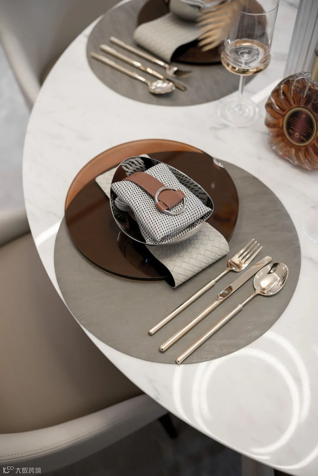 客餐厅以立面与地毯的延展变化作软性切割,米色、橙色、灰色基于不同的比例、材质融合交织,在缓解视觉疲劳的同时,也交互出了空间向心力与感染力的视觉焦点。