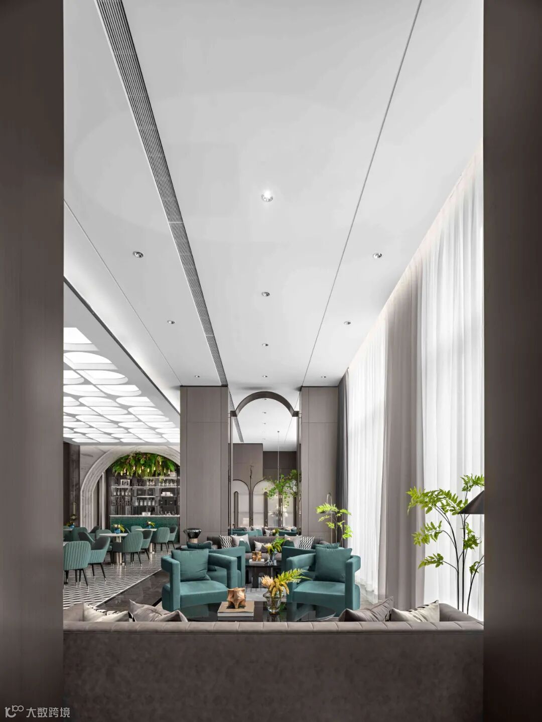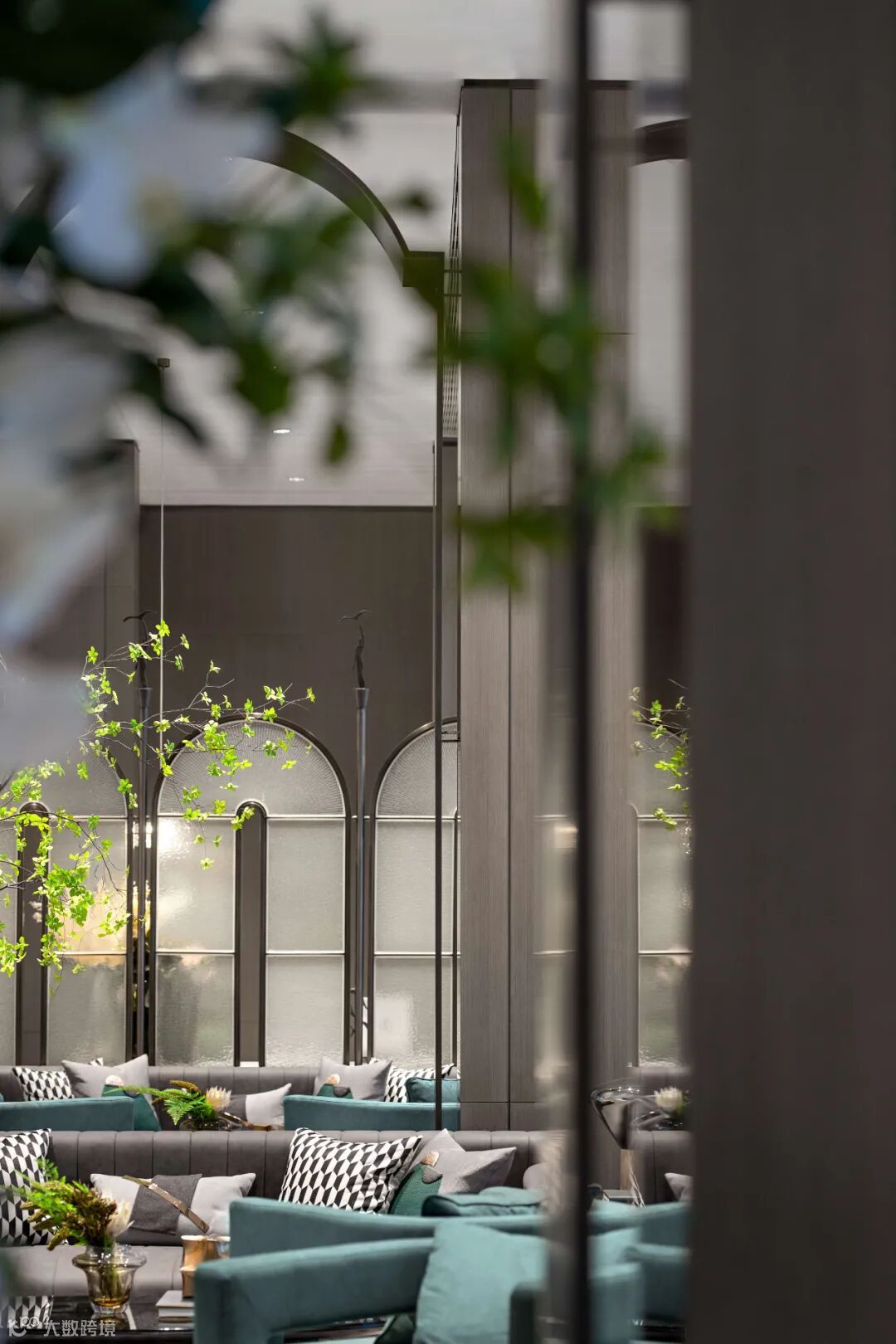转入洽谈区,明朗的光线与松弛有序的陈设布局让空间情绪进行了第二重置换。不同节点的意式拱形为大厅平添几分异域风情,绿植的措置则让趋于优雅的空间气质焕发出自然的清新气息。