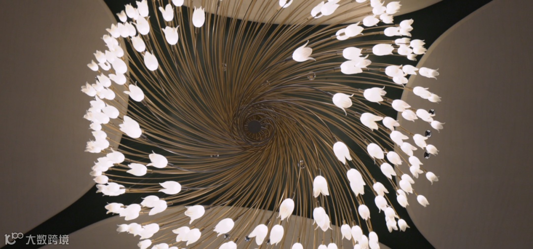 步入序厅,纵向铺展的沙盘灯首先构成了第一重视觉震撼。重重盘踞的“繁花”自上而下环旋舒展,在精致与繁密的间奏里勾勒出轻盈的空灵感。