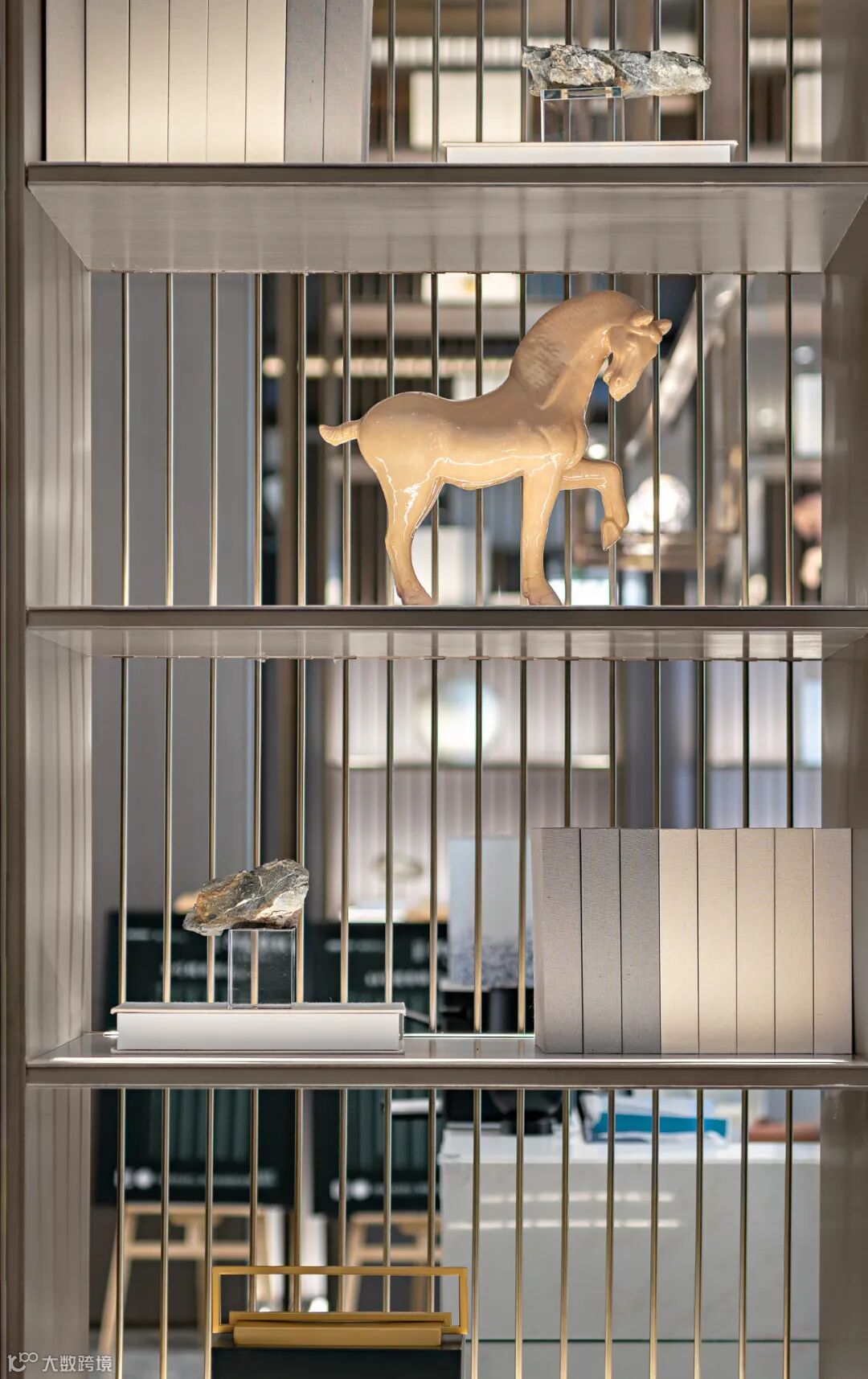 河出图,洛出书,一道文脉贯长虹。河洛文化作为华夏文明的摇篮与王者之里,承袭了悠久的礼序文化,也染上了浓厚的书卷气。不同形式的洽谈区被高高的木质博物架依次隔开,断续承接俱是齐整的线条,呈现出硬朗而温润的序列感。