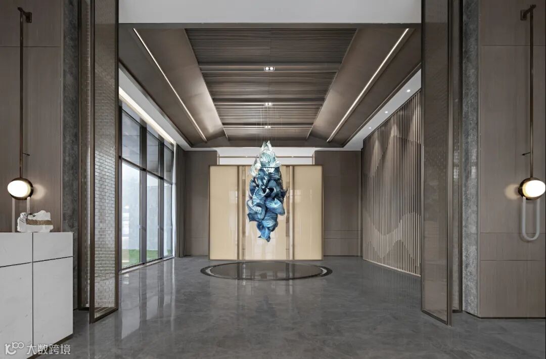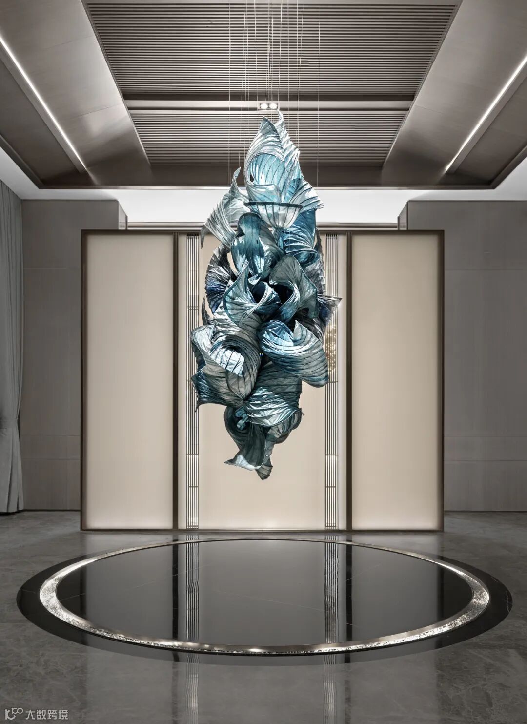 在这里,风雅的笔墨时而疏淡,时而秾艳。初入门厅便是一朵悬垂的浪花,柔曼舒展中翻卷出莫名的张力;又如曹植笔下洛神风情的裙裾,“披罗衣之璀璨兮,珥瑶碧之华琚”。质感、色彩、光影,张扬的视觉焦点留下无尽绮丽的想象。