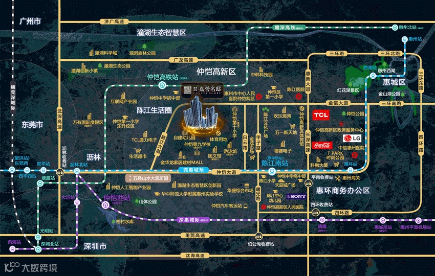 多维立体的交通路网带来的不仅是城市人生活上的便捷从容,更是诠释了一个城市的发展维度。禹洲·五经嘉誉名邸临近赣深高铁(已开通)/莞惠城际(已开通)与深惠城际(建设中)/四大高速,速享一站抵莞两站抵深畅达八方。择址仲恺高新区陈江CBD,四条主干道与丰富公交路线构成全维路网,多元化出行方式畅享湾区繁华。