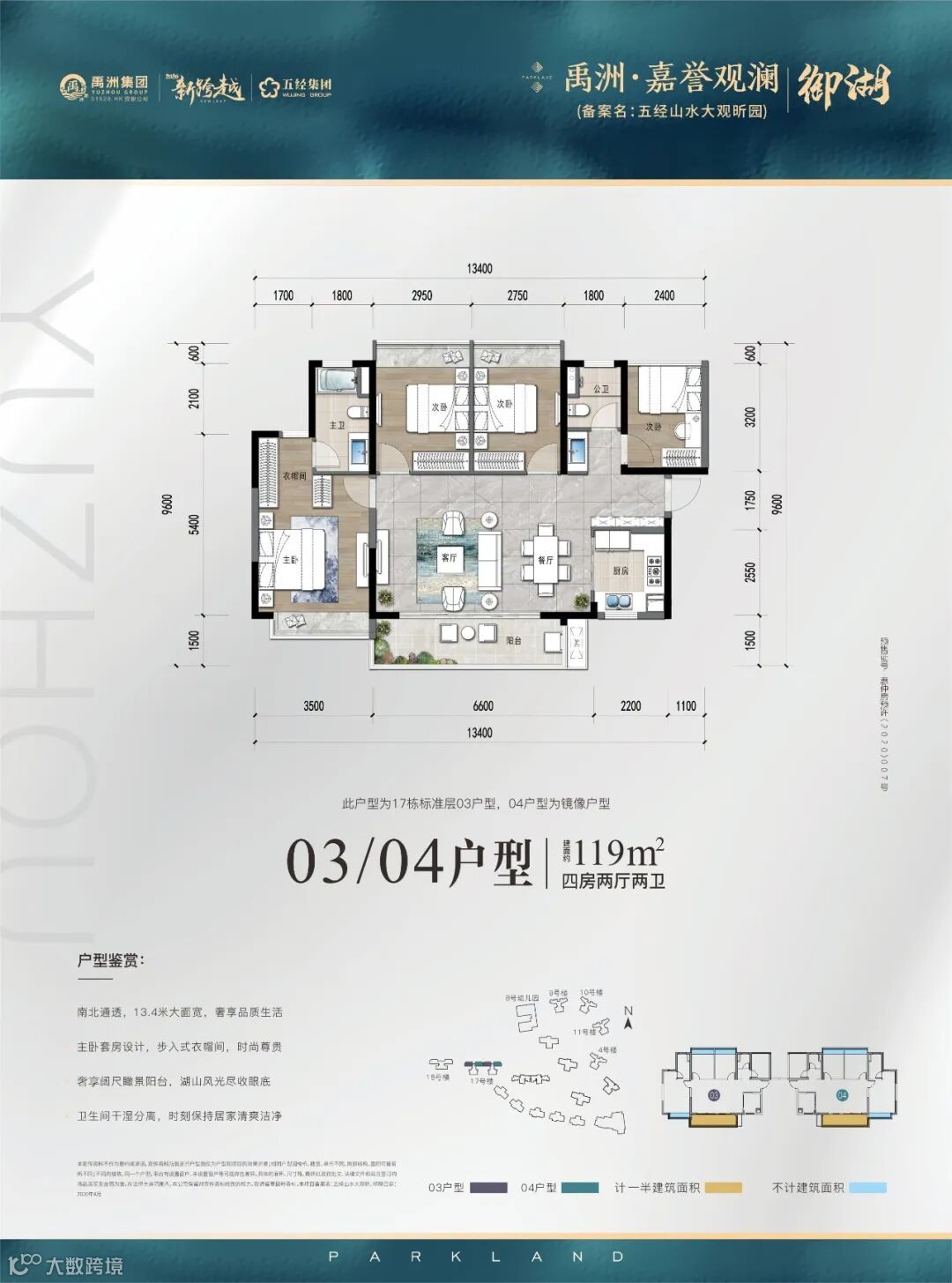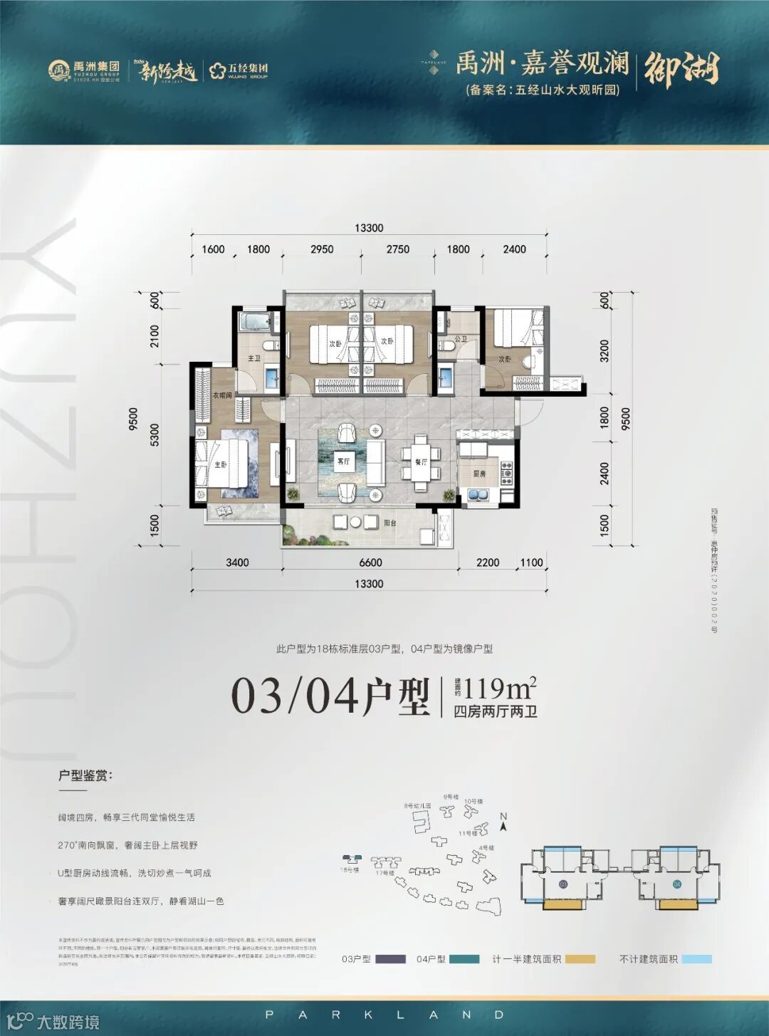 一线湖景楼王 约119㎡ 四房两厅两卫