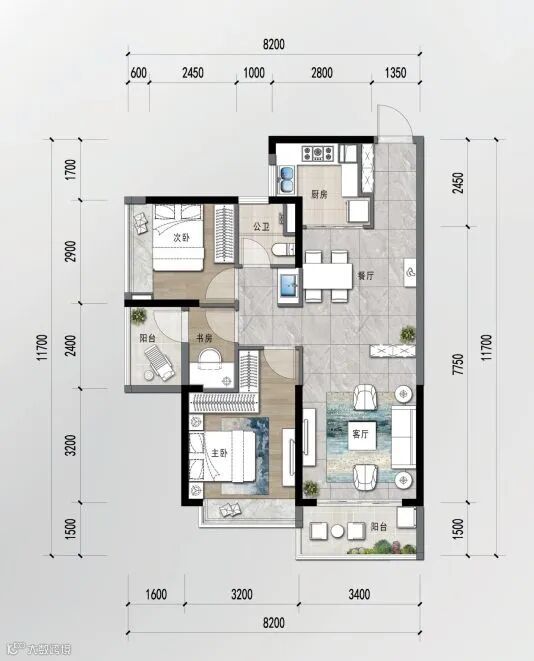 约98㎡ 2+1房两厅两卫