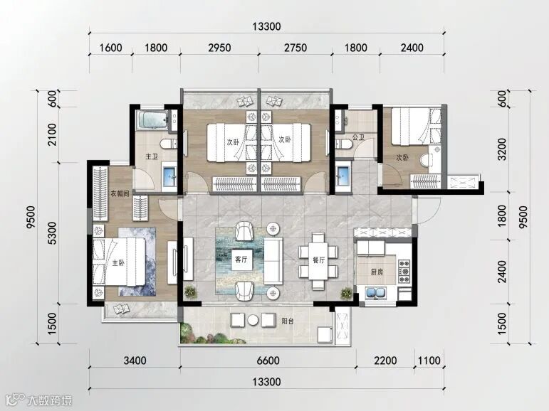 约119㎡ 四房两厅两卫