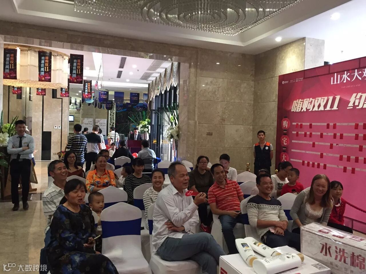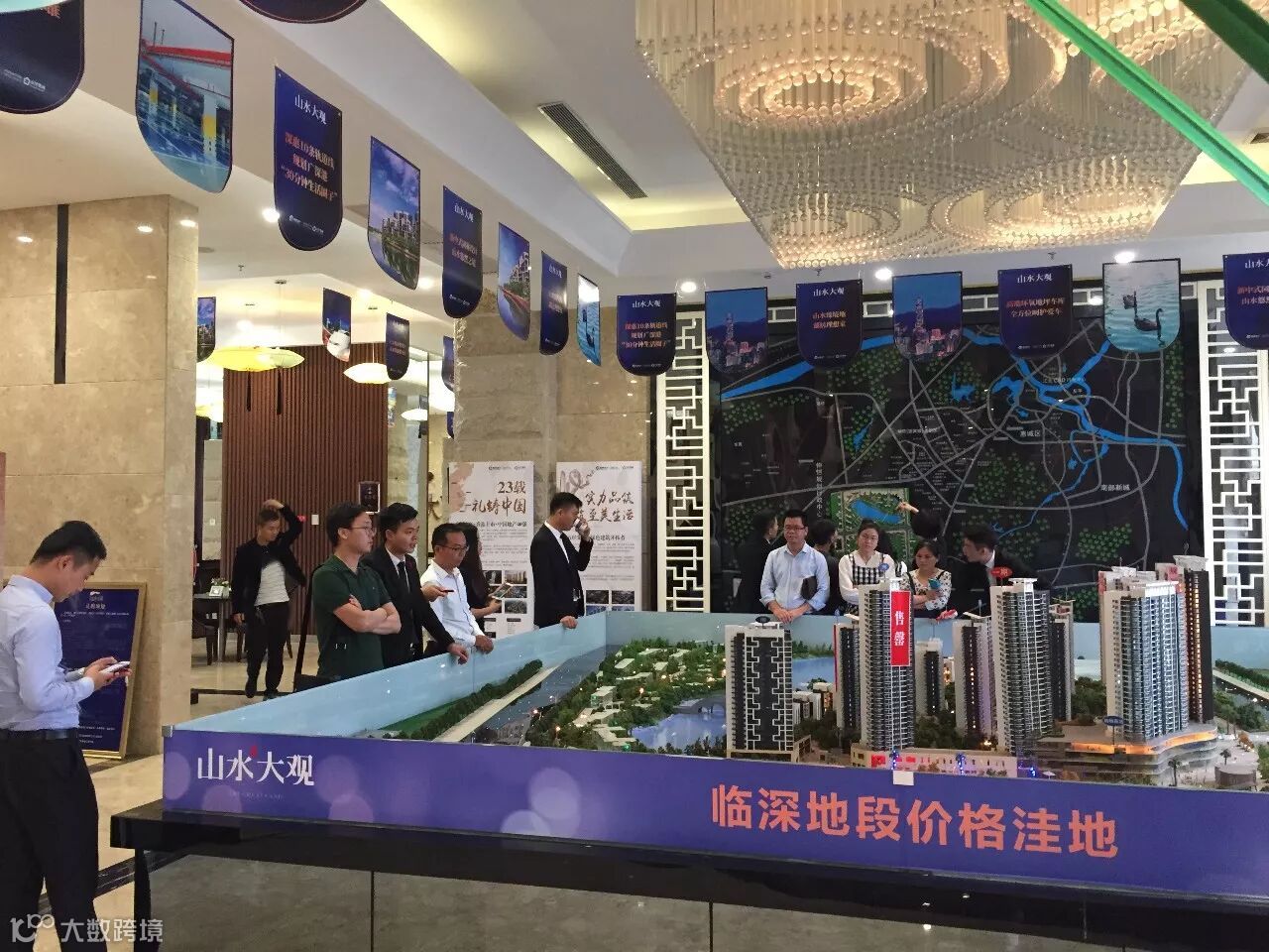 参加拍卖会的客户在周六纷纷聚集至山水大观售楼处