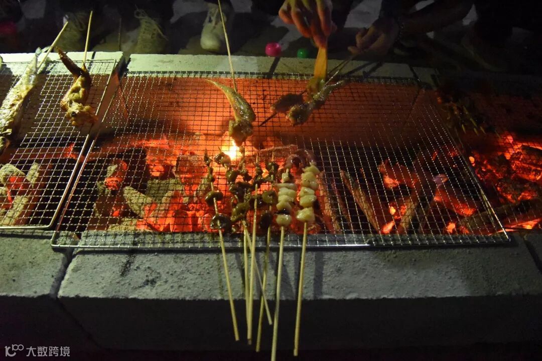 随着天色渐暗,活动在一片欢乐的气氛中开始了,各种美味被炭火烤得“吱吱作响”,香气四溢!