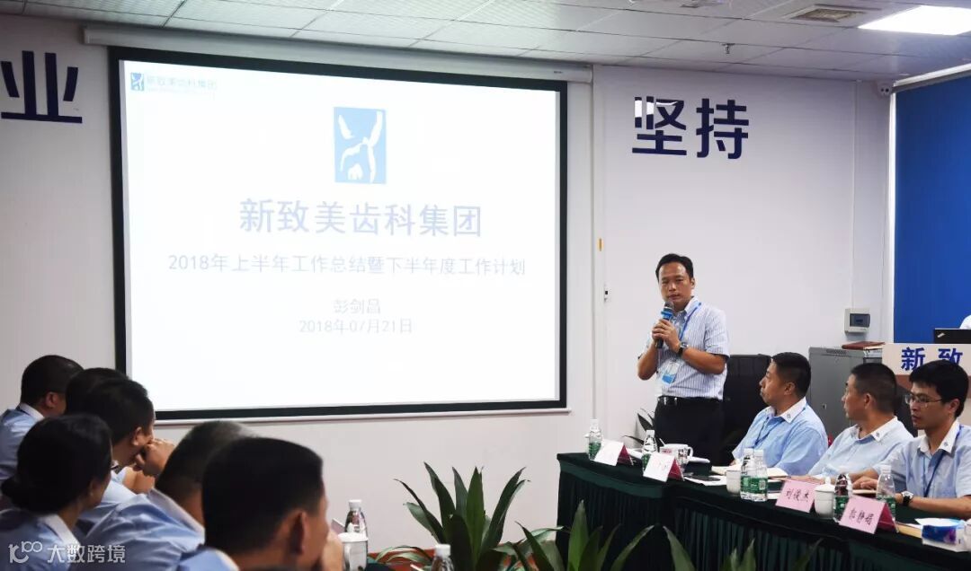 2018年7月21-22日,新致美齿科集团召集全国各子公司总经理举行2018年中工作总结暨下半年工作部署大会,为期两天。会议主题为复核2018上半年完成的各项指标,商议2018下半年如何达成全年的任务。