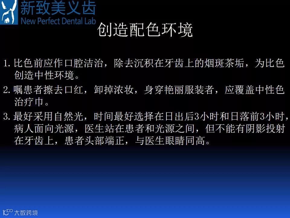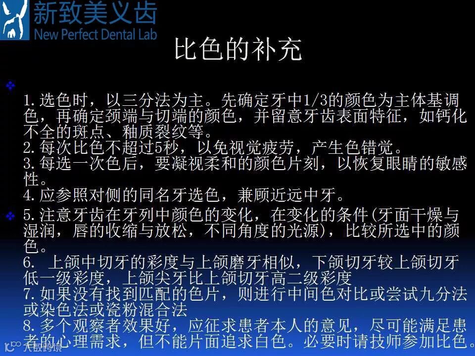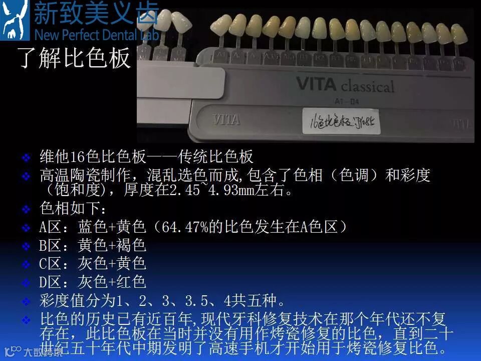 随着技术的进步和材料的发展,修复体的美学效果有了很大的提高。但作为修复体美学要素的最重要组成部分,牙齿颜色的完美再现始终困扰着我们,因颜色不匹配导致返工,美学效果也因颜色问题大打折扣,下面,让我司技术总监王丽霞就比色这一问题进行讲解。
