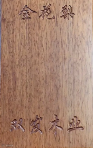 2. 纹理美观:金花梨木木质紧密,纹理美观,木材表面有金黄色或淡红褐色的光泽,且具有明显的金花色泽和木纹暗花。