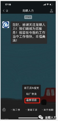 龙顺人力第一步:关注微信公众号:龙顺人力-点击:查询工资-点击:最新领薪