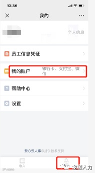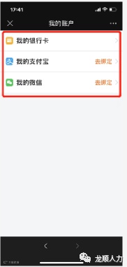 第四步:点击:我的-我的账户-绑定下提现的方式(根据发薪劳务告知的方式绑定)