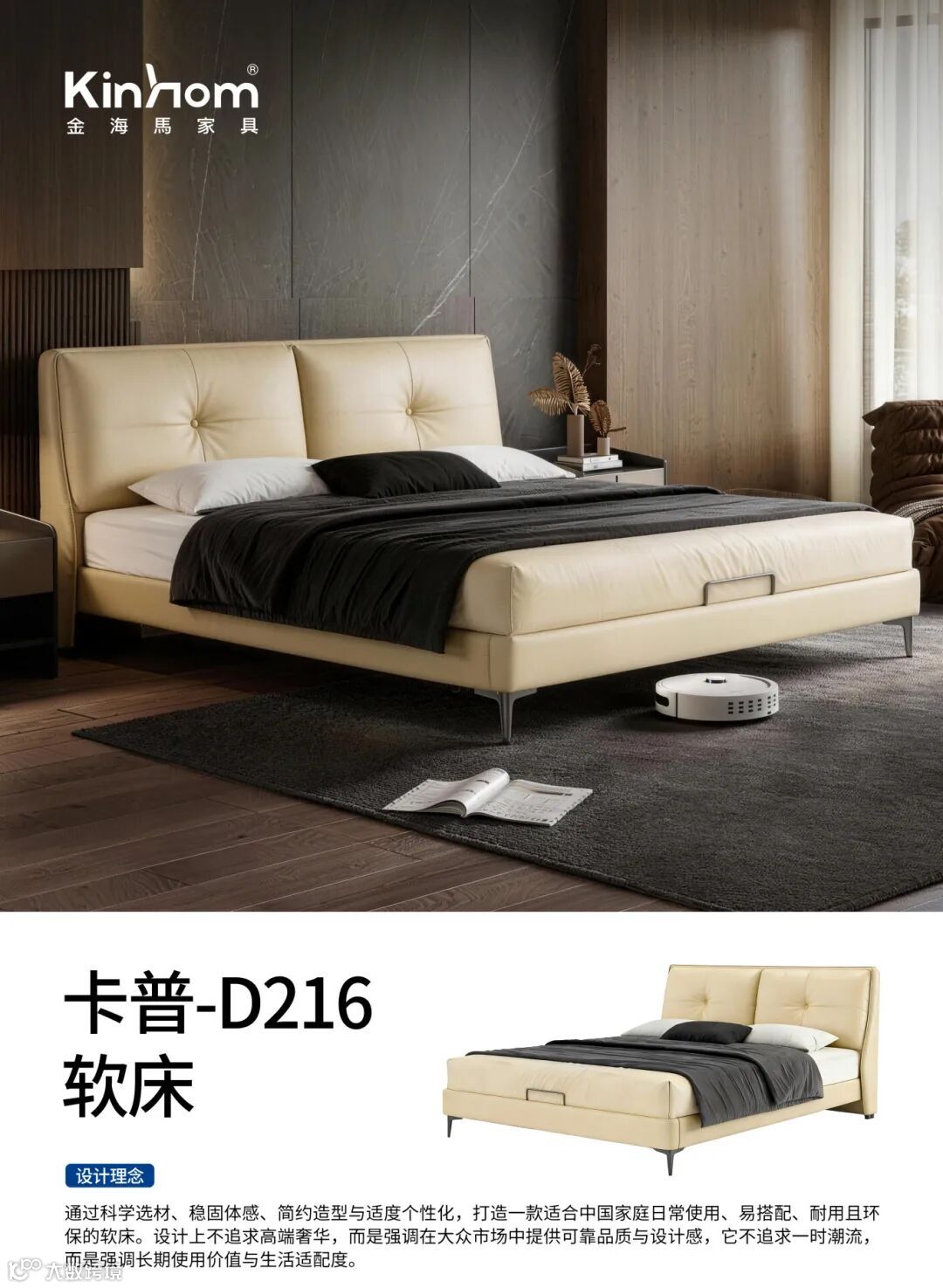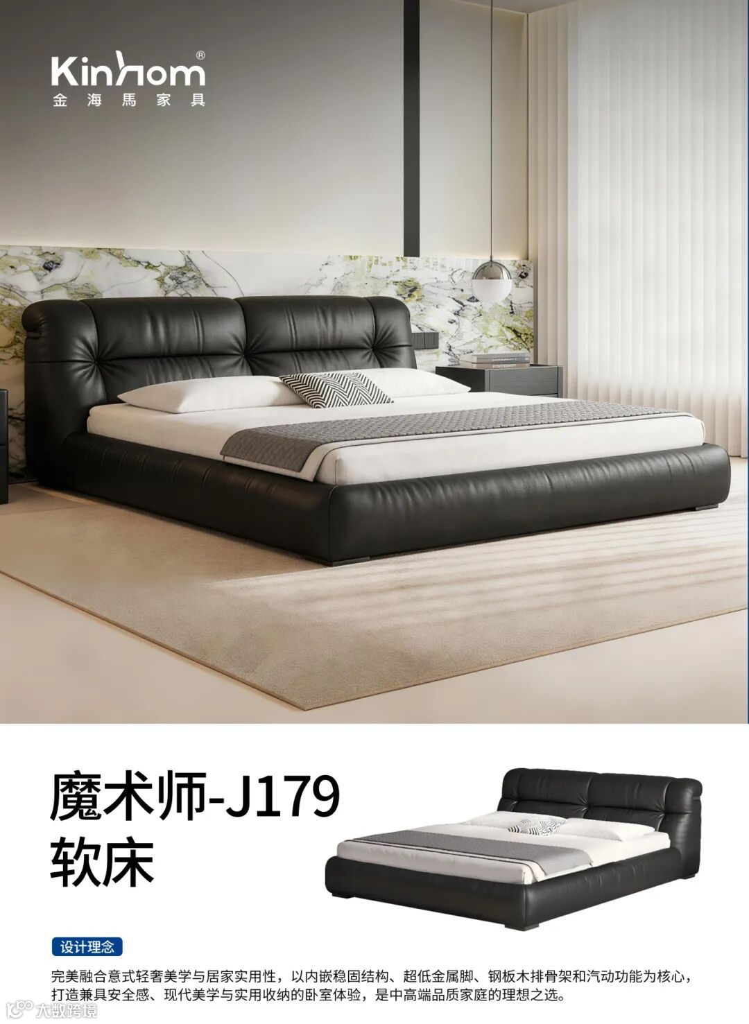 11 款软床新品:头层牛皮、北美黑胡桃、高蓬松羽绒填充、齐边 / 包边可转换等设计,兼顾颜值、支撑与空间适配,打造主卧舒适港湾。