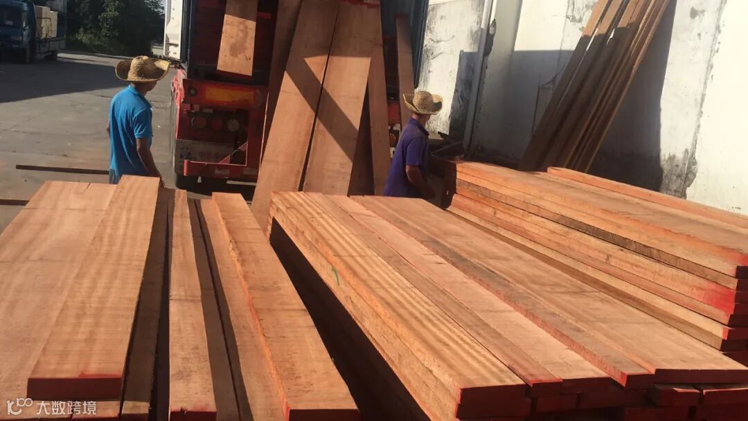 炎炎夏日,海棠木,金丝柚,胡桃木等木材边卸货,边出货,热火朝天!