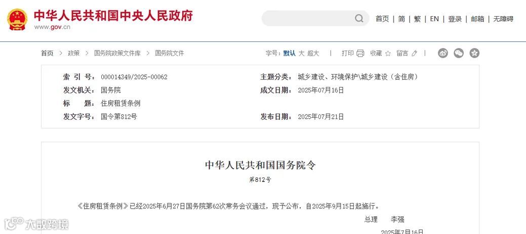 《住房租赁条例》
