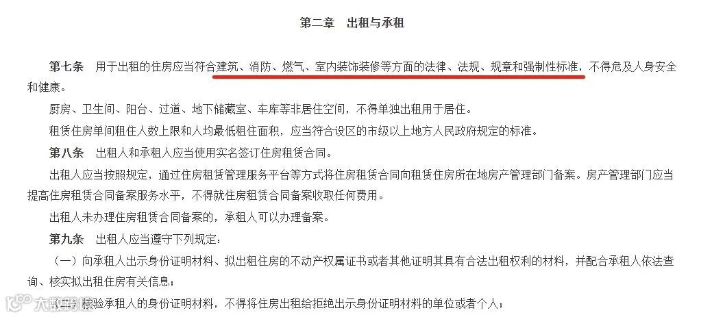 用于出租的住房应当符合建筑、消防、燃气、室内装饰装修等方面的法律、法规、规章和强制性标准,不得危及人身安全和健康。