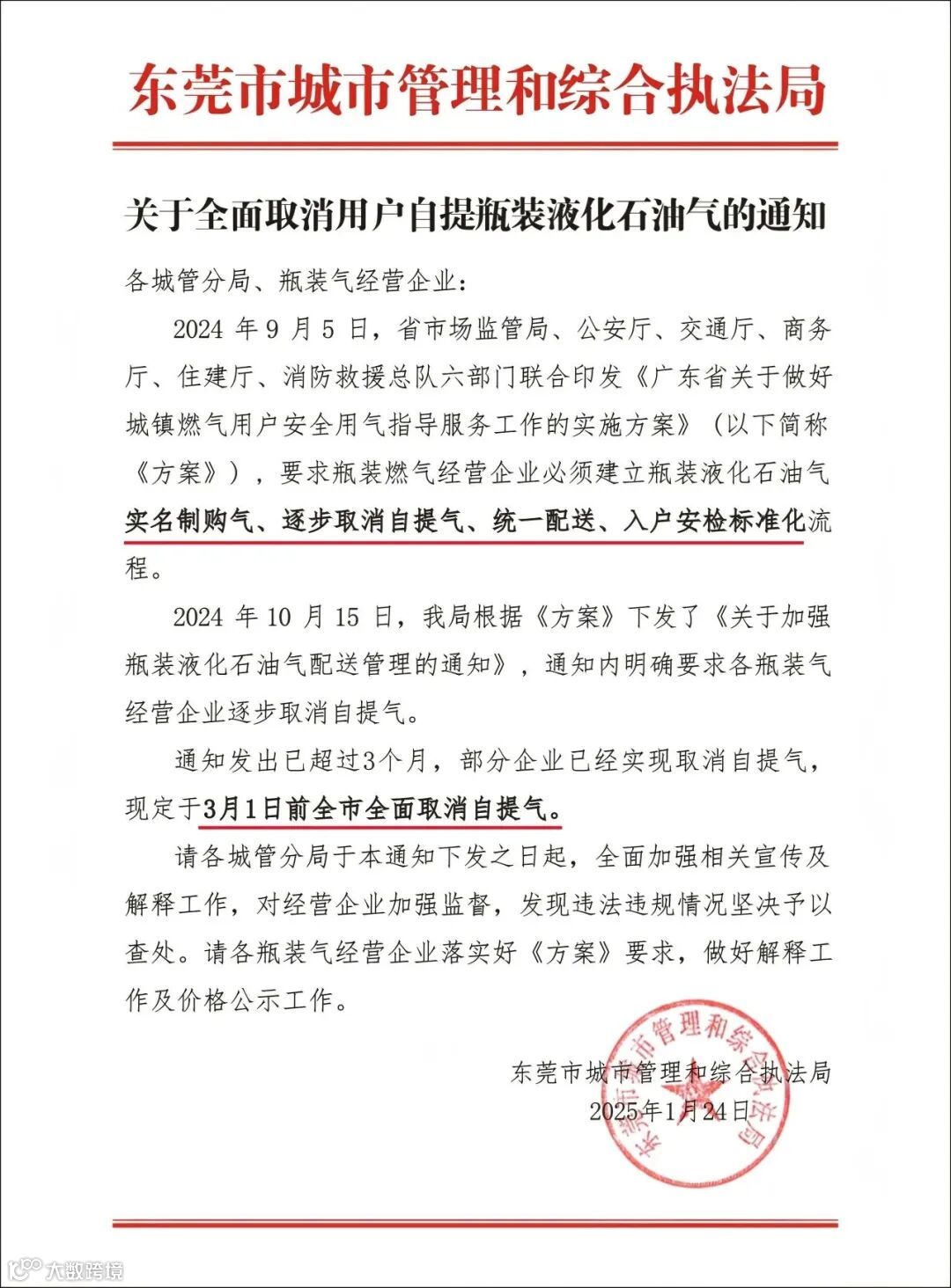 为落实文件工作要求,我司已于2025年2月20日起全面取消自提,为避免影响大家用气,请提前做好订气准备。