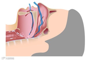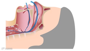 上图为不打呼者的上气道,从鼻腔、咽喉到气道,是一个顺畅的通路。