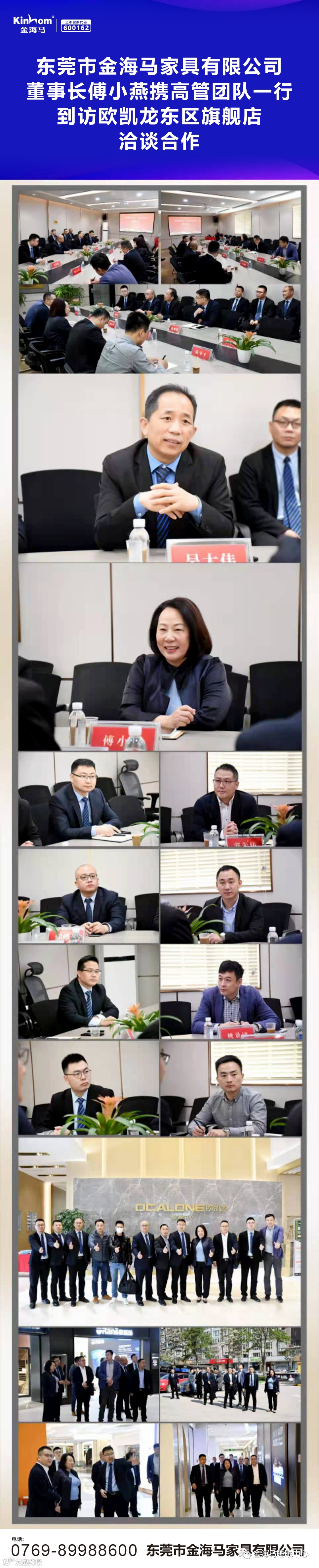 近日,东莞市金海马家具有限公司董事长傅小燕女士、营销总监郭先伟先生及高管团队一行抵达郑州,与欧凯龙集团执行总裁吴大伟先生举行洽谈合作。