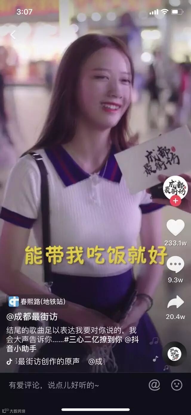 最近常玩抖音的网友应该都发现了,不少网友都在说去成都找小甜甜,这个小甜甜是何方人物?名为“成都最街坊”的抖音号发布了一个采访小姐姐的视频,其中问了一个这样的问题:你觉得男人一个月多少工资可以养活你?小姐姐:养活我啊,嗯,我觉得,能带我吃饭就好了。然后这个视频也是得到了大家二百多万的赞,现在还在持续上升中。