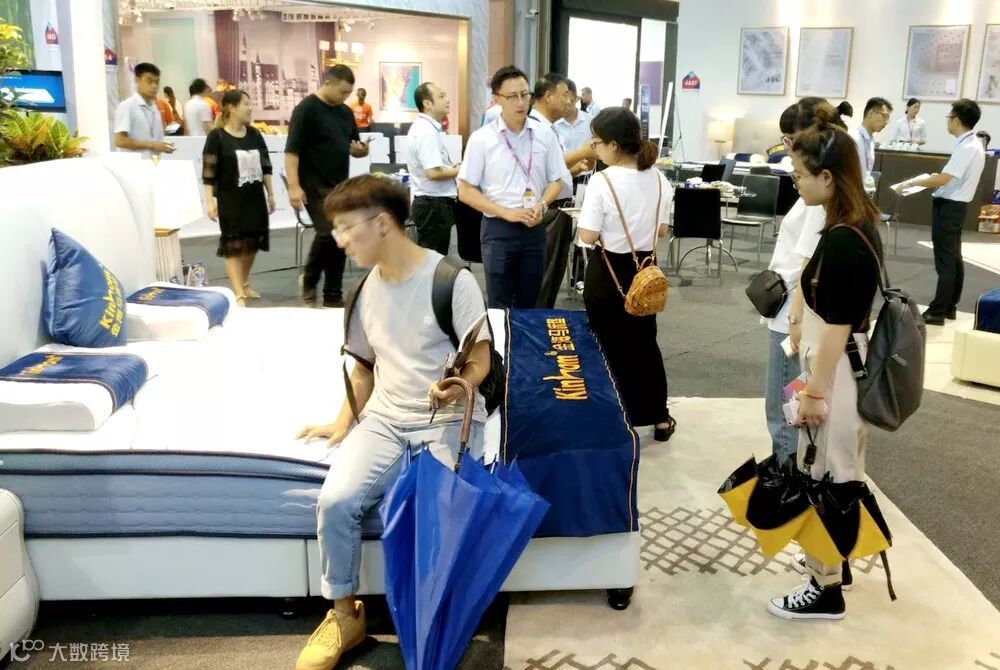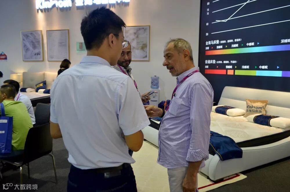 这位来自阿拉拍地区的外国观展商在询问床垫的特性