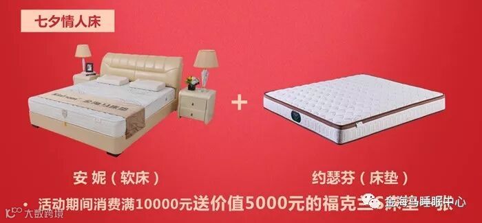 活动期间,金海马品牌专卖店将推出全新款七夕情人节特色床垫 ———情人床!顾客可提前下单定制,或活动期间到店选择;提前支付预付金的,还将赠送情人床配套爱心枕头1套。
