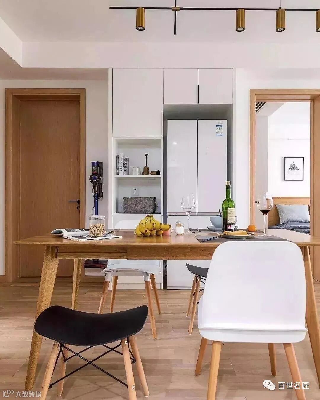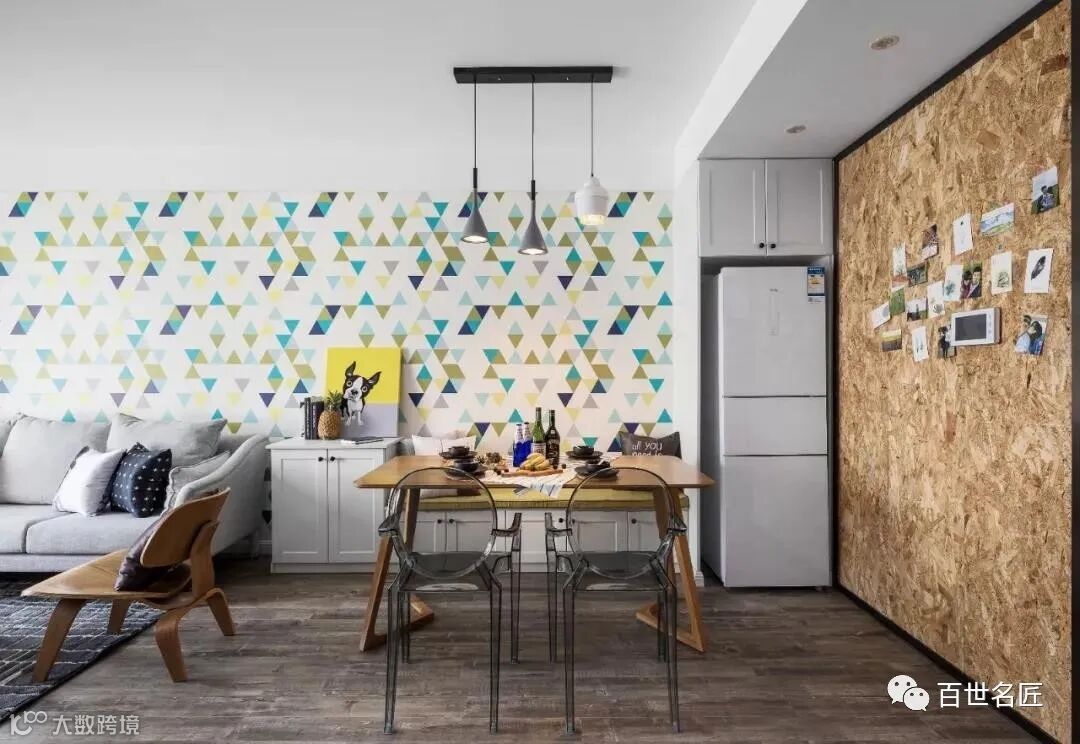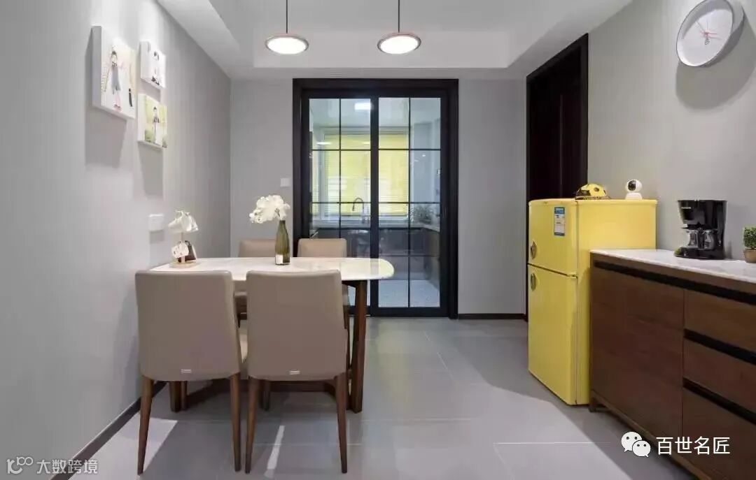 小户型的厨房太小,没有多的地方放冰箱,可以放在餐厅,存取都很方便,也是一个不错的选择!
