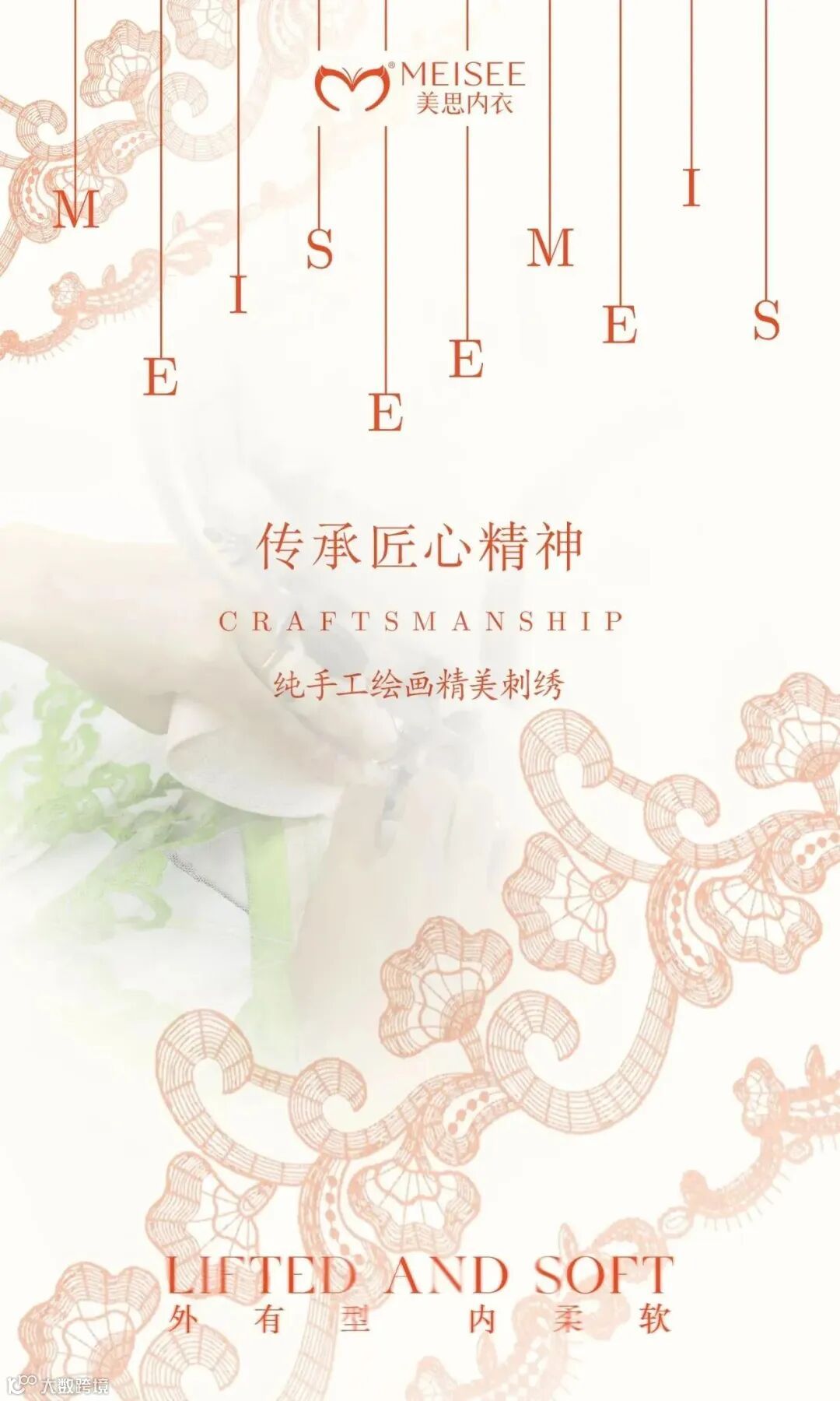 设计师以纪念美思深耕车缝式内衣35周年,传承匠心精神,推广中国传统文化,将我国非遗传承文化作为灵感来源,结合中国纹样,纯手工绘画出精美的花纹图形,再通通过现代刺绣工艺,历经128道工序完成定制打造高端周性系列。