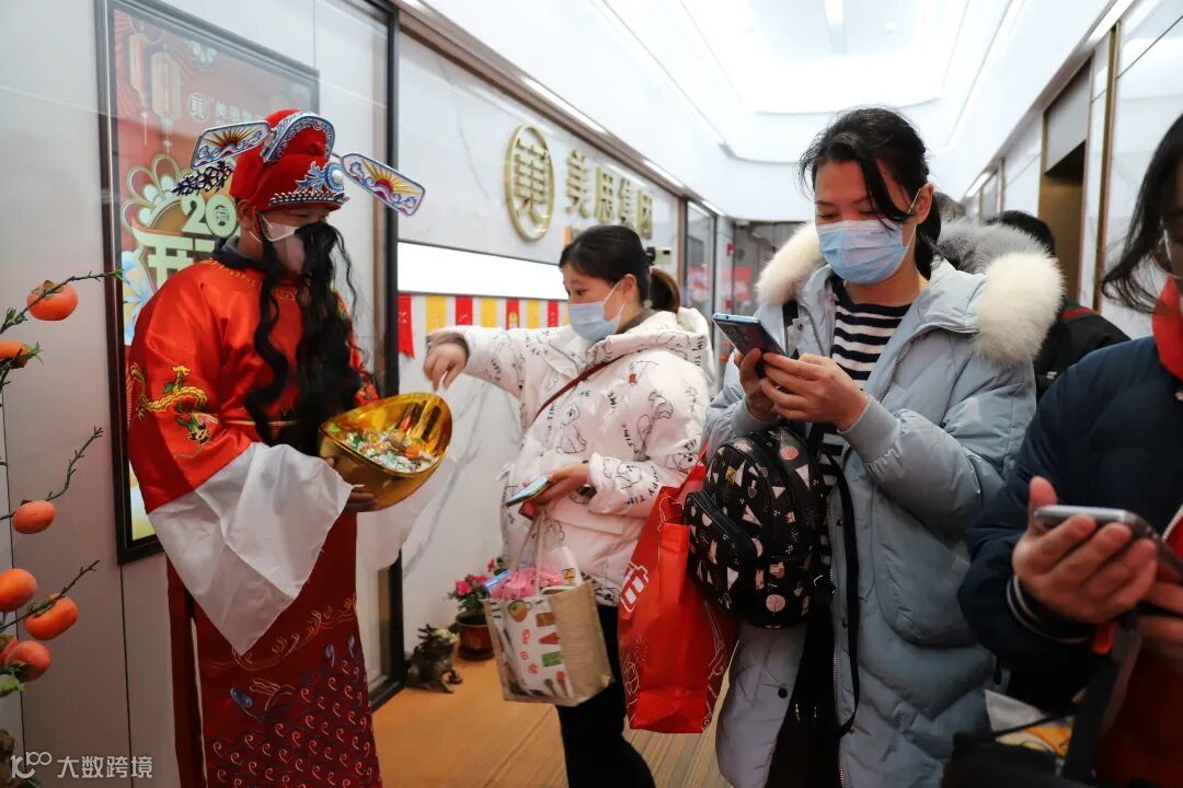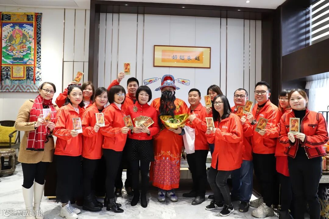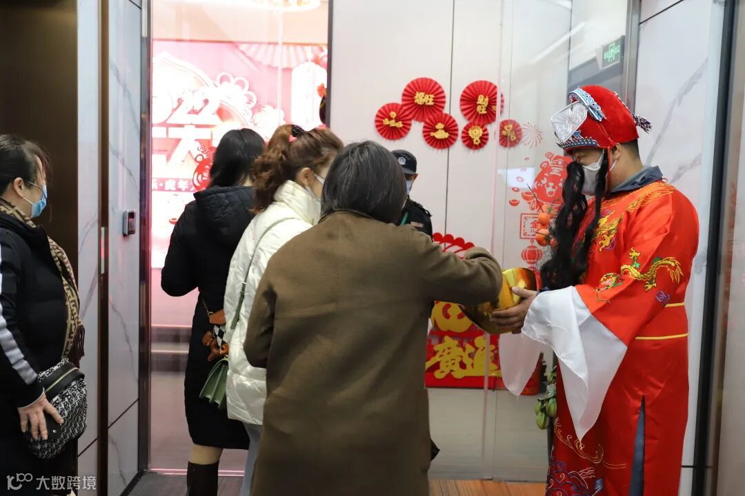 2月10日,新春佳节之后第一个工作日,财神一早守候在办公室门口,为员工送上开工祝福。接过财神派发的金币和金元宝,虎年一定财源滚滚,虎虎生威!