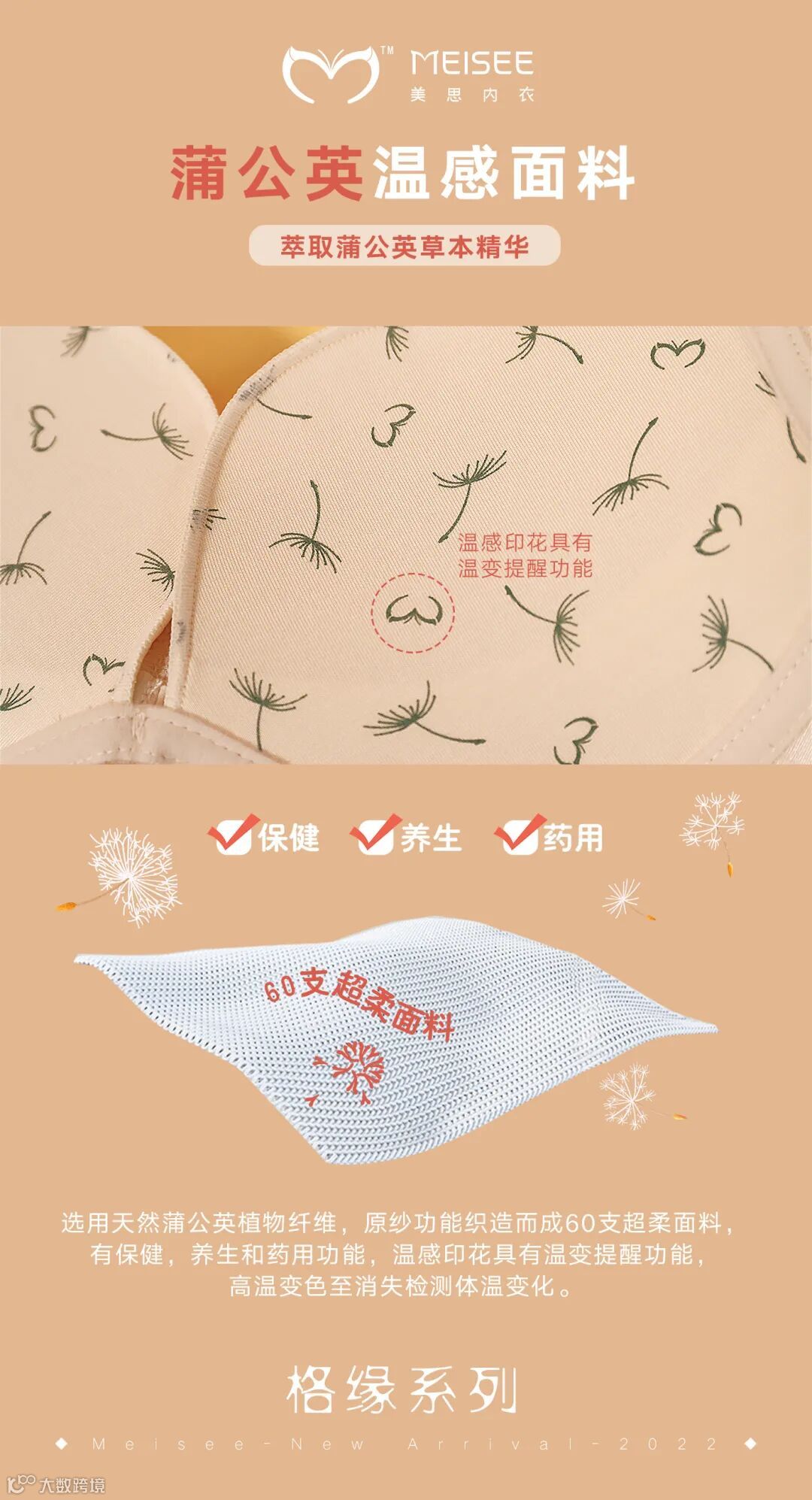选用天然植物纤维·蒲公英温感面料