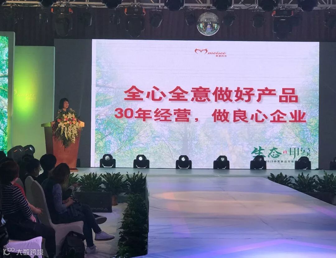 此次会议的重头戏----美思品牌2019春夏新品发布秀,是整场会议的点睛之笔。简单大气的又充满着生态气息的舞台,布置在绚耀幻彩的灯光下,模特仿佛降于人间的精灵,婆娑婀娜的身姿与律动从容猫步,演绎出每个女性内心深处的自我与优雅,把现场嘉宾带入了一场视觉盛宴之中。
