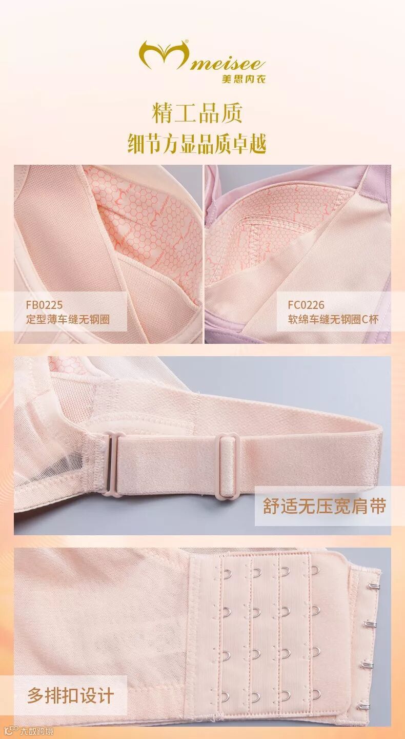 精益求精,是美思的卓绝追求。从面料的精选到全包裹杯型的设计,杯面精美蕾丝铺展,加宽的减压无痕肩带,加高侧比后比,多排多扣设计,处处细节无不体现匠心。