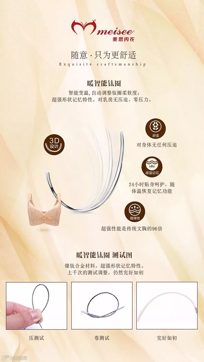 暖智能钛圈的结合使用,为这款全罩杯舒适型内衣加分,舒适无压一如初感受,全天候贴身呵护,自动调整,无压无痕,更为塑形。