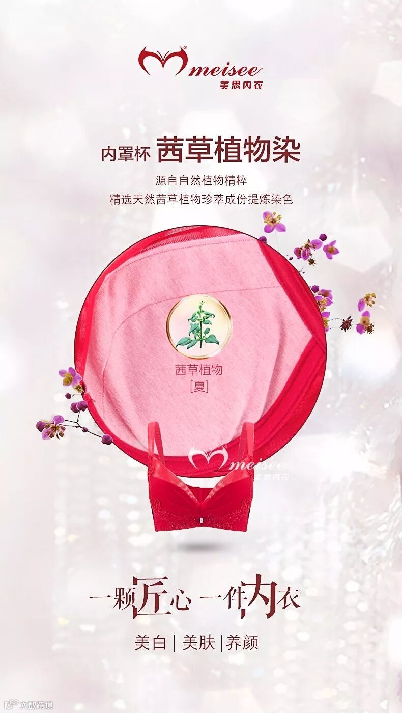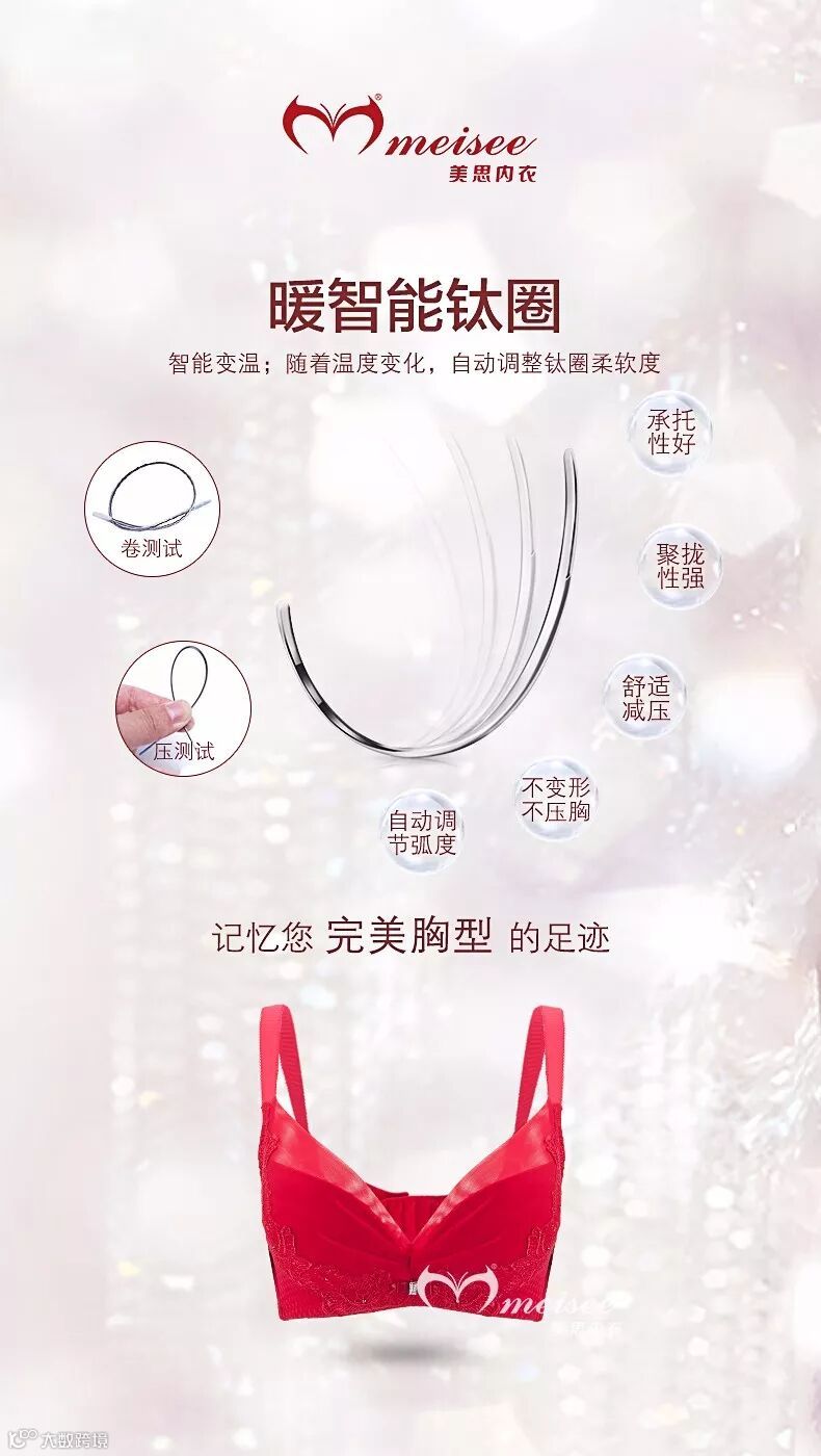 卓绝健康,是美思不懈追求!在功能面料的运用上,本系列产品延续茜草植物染面料作为内罩杯面料,天然环保,卓绝超群!而全系列体现的暖智能钛圈,在一定程度上加强了承托能力,丝毫不受挤压,零压力零束缚!