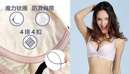 4.加高夹弯及侧比更好的收拢腋下脂肪,使胸部更集中聚拢。