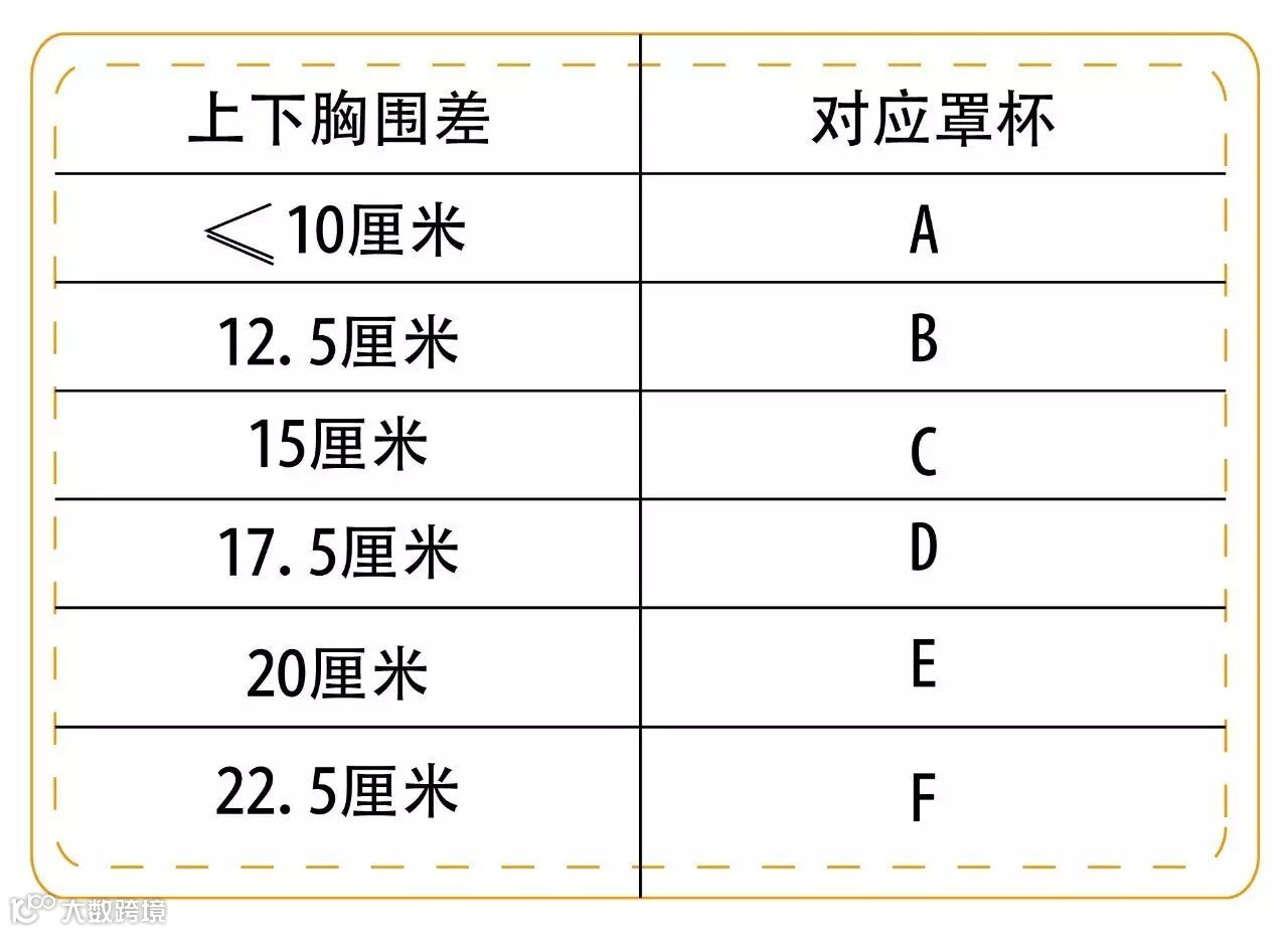 其实,罩杯就是胸部隆起的高度,至于它的数值嘛,就是上胸围与下胸围的差。看看自己属于哪个罩杯吧!