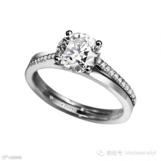 De Beers婚戒代表之作的The Promise钻石戒指,以交错缠绕的双循环戒环为主要特色,中央镶托璀璨单钻,象征爱情中两人完美的结合与永恒的承诺。这个系列也另外推出公主方型车工款式供选择,而每颗重量达0.20克拉以上的钻石,钻面会以隐藏式微刻技术刻上极细的De Beers标识,确保每颗钻石的独特性。