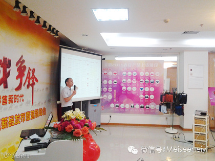 美思公司石经理向在座的客户重点讲述了美思品牌在广西市场的规划,其中包括品牌策略和产品销售思路。