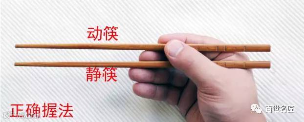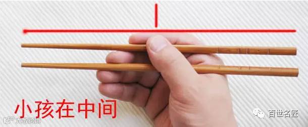 一般来说,小孩用筷子时,握取部位在筷子中部。成年后可向筷尾移动,握取部位在离筷尾四分之一处。