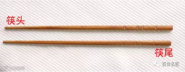 筷子分筷头筷尾,筷头一般圆润光滑,稍细一些,用来夹取食物。筷尾方正,一般有刻花刻痕,比筷头粗大一些。
