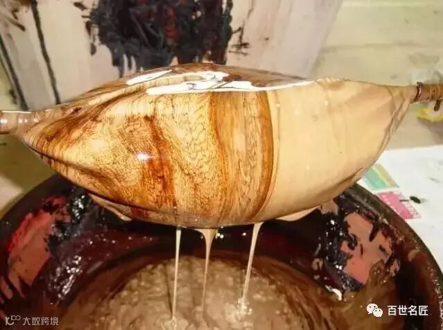 我们能够想象:大约一万年前,黄河、长江流域气候温暖,山林茂密。生活在这里的人类开始从事原始农业及手工业,他们砍伐树木,建筑房屋。当砍到一种特殊的树木时,液体从创伤的树皮中外溢,沾附在石斧、石锛上,或者滴在土器或陶制器物上。这些粘在石制工具或陶器上的液体,在潮湿的树林中干燥成膜后,人们发现它更加坚牢,也更加黑亮美观。这种树木就是漆树,流出来的液体就是生漆。一位聪明人便有意识地将生漆涂在工具木柄上,或者涂在陶器上作为一种装饰。后来,人们又将这中黑亮液体涂在木质器皿上,产生了中国第一件真正的漆器。