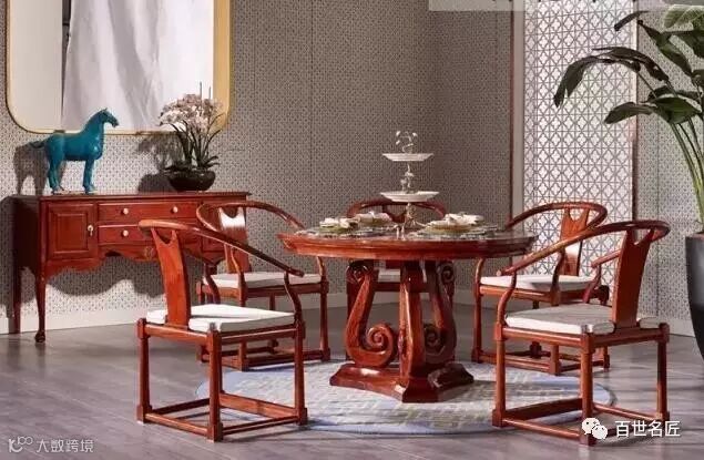 “圆”运用到家具中,就不得不提圆桌了。圆桌可以说是团圆之意的集大成者,在中国传统家具中颇为常见。百世名匠之圆餐桌形如满月,象征一家老少团圆,亲密无间,大家围坐在一起不分彼此,围桌而坐,气氛融洽而且聚扰人气,能够很好地烘托进食的气氛。
