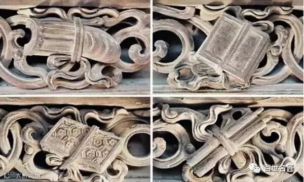 古代的铸币。古钱与蝙蝠图,叫“福在眼前”;古钱与喜字谓之“喜在眼前”;“金玉满堂”为古树枝上挂古钱。钱,古称泉,泉与全同意,因此,蝙蝠衔着用绳穿起来的两枚古钱,称“福寿双全”。古钱的形意图样多表现在条桌和八仙桌的围板雕刻中。