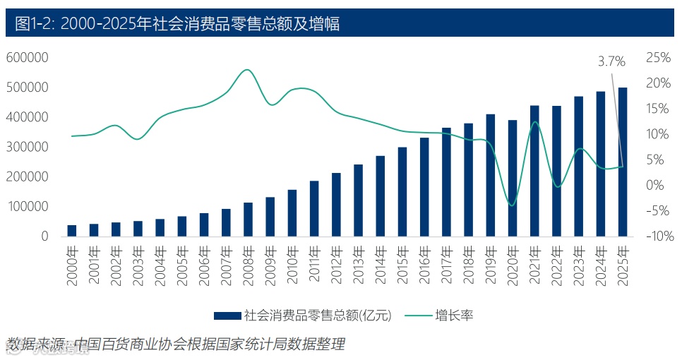 2025年我国社会消费品零售总额突破50万亿元,消费市场持续扩容。但百货零售业正面临销售、盈利、客流、客单价全面承压的深度转型期。