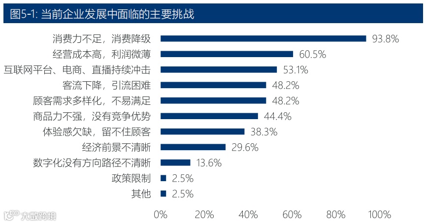 - 客流与客单双降:51.9%的企业到店客流下滑,54.4%的客单价下降;线上分流、商业体供给过剩及场景吸引力不足,导致线下复苏乏力,服饰、美妆等可选消费品类受冲击明显。