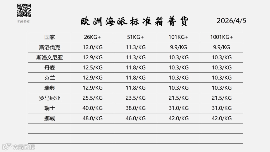 欧洲卡空派超大件双清包税服务价目表